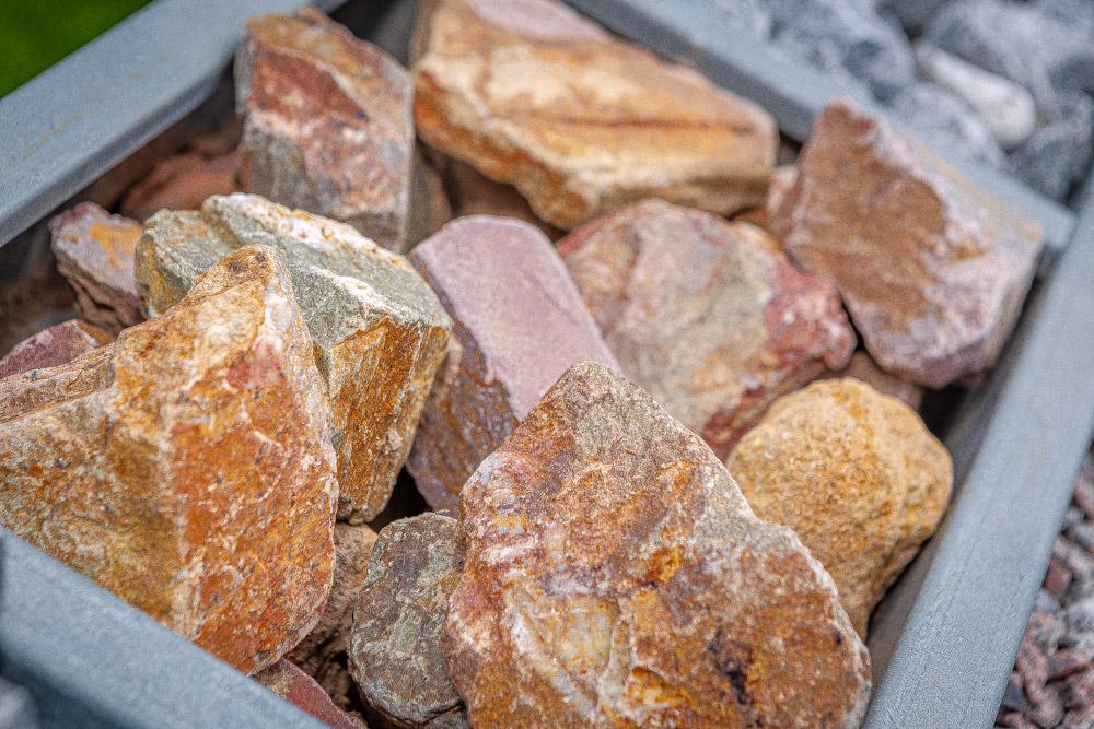 Lavasteen siergrind heeft een prachtige kleurenmix van dieprode, lichtrode en grijze breuksteen. Deze siersplit heeft een tijdloze uitstraling en kan daardoor heel goed gecombineerd worden met verschillende soorten bestrating. Het lavasteen siergrind wordt gemaakt door grote keien te breken tot kleine steentjes. De verschillende afmetingen worden na het breken op formaat gesorteerd.